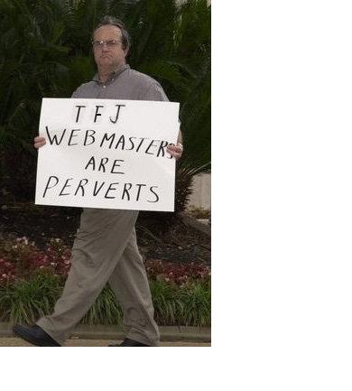 TFJ Protest Check it out - this gentleman was recently seen protesting in front of Wiggins. Apparently Mrs. Derrick is starting a protest movement against TFJ. Good luck boys.
