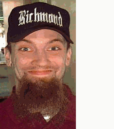 Adam Weaver Loses it at Richmond Last but not least -- I got a picture of former student Adam Weaver from a non-GSSM associate at Richmond. This picture depicts Adam's new look.. He has been spotted at Slayer Concerts, biker bars, and numerous tatoo conventions. I hear he has dropped out of Richmond and is pursuing fame and fortune as the lead guitarist for his new death metal band Ever-Rotting Corpse.